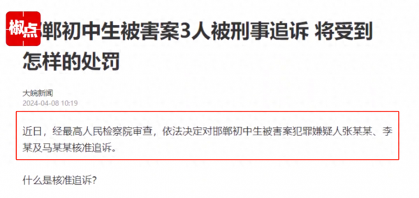 4月8日,最高人民检察院经过审查,依法决定对于邯郸初中生被害一案中的3名未成年嫌疑犯进行追诉!
