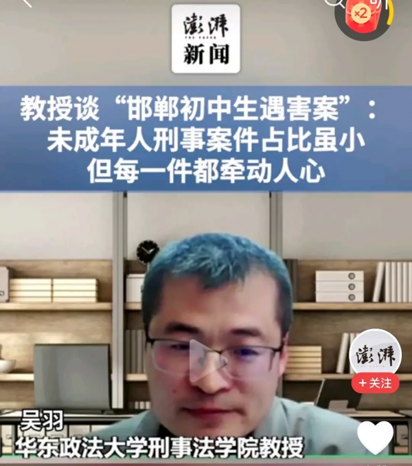 这个案子可以说全国人民都在看着!华东政法大学刑事法学院教授吴羽发文说:未成年人刑事案件占比虽小,但每一件都牵动人心!