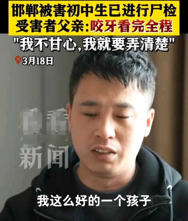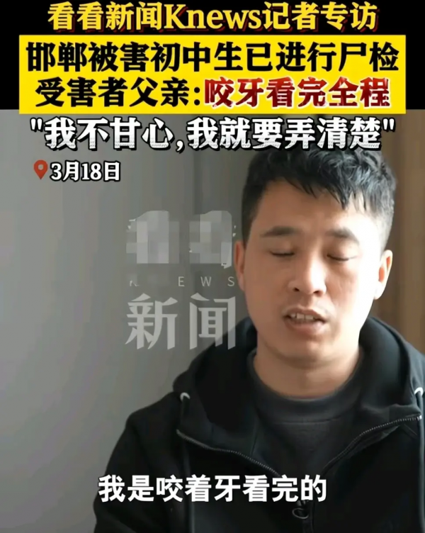 邯郸初中生被害父亲接受采访,称咬着牙看完解剖