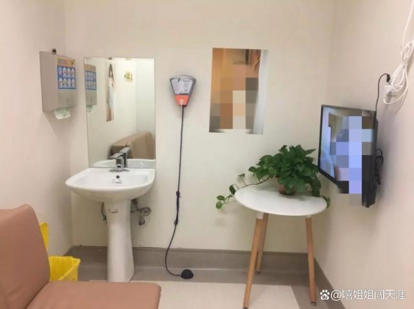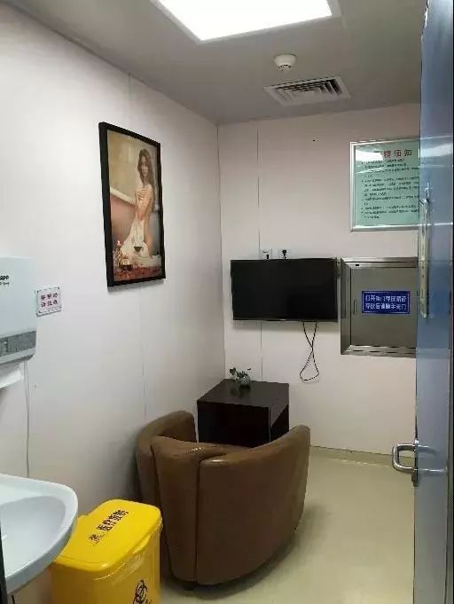 取精室是个三四平米的小房间,放了一张沙发(或一张小床),一个医疗垃圾桶,紧急报警器,备了一些擦手纸,还有一台电视机。