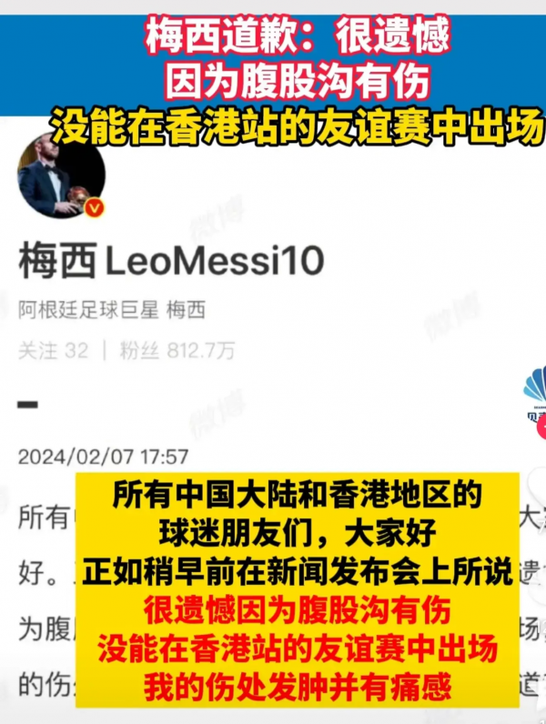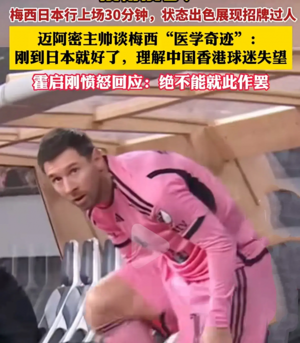对于梅西在香港声称身体腹股沟有伤,无法上场,却转眼间就跑去日本踢球30分钟,网友称简直是"医学奇迹"。