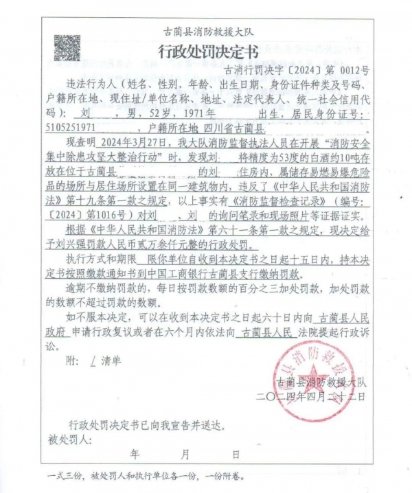 据悉,根据《消防法》第六十一条的规定,这一违法行为可被处以5000元至50000元不等的罚款!最终,当事人被处以2.3万元的行政处罚,算是从轻发落了。