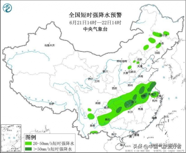 内蒙古东南部、黑龙江南部、吉林西部、辽宁北部、河北中部、北京南部、天津西部、河南东南部、安徽、江苏、上海、湖北、湖南中北部、江西北部、浙江北部、重庆中东部、贵州、云南东部等地的部分地区将有小时雨量大于20毫米的短时强降水天气,其中,河南东南部、安徽、江苏中北部和南部、湖北中东部、湖南北部等地的部分地区将有小时雨量大于50毫米,最大可达80毫米以上。