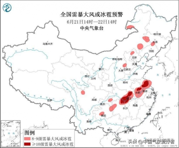 在这些暴雨的背后,强对流天气也不甘寂寞,纷纷登场。雷暴大风和冰雹,这些天公不作美的标志,预示着更为激烈的天气变化。中央气象台6月21日10时升级发布强对流天气黄色预警:预计6月21日14时至22日14时,内蒙古东部、吉林中西部、辽宁北部、河北中北部、河南南部、安徽中南部、江苏、湖北中东部、湖南北部和西部、贵州中部和东部等地的部分地区将有8级以上雷暴大风或冰雹天气,其中,河南东南部、安徽中部、江苏中北部、湖北中东部、湖南北部等地的部分地区将有10级以上雷暴大风,最大风力可达11级以上,局地可能出现龙卷。