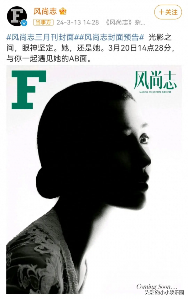 近期,时尚杂志《风尚志》官宣三月封面人物,按道理一个杂志每个月都会有明星撑起封面,但是这一次却上了热搜,因为这个封面人物是杨颖,但是杨颖很低调,估计也是怕被骂,她在自己的微博上并未做宣传。
