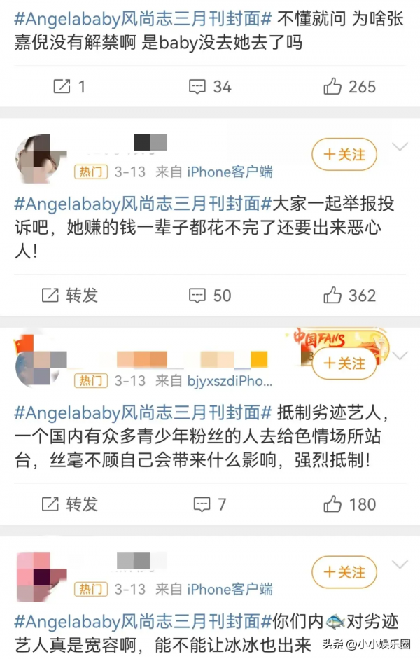 自从去年疯马秀事件之后,杨颖就消失在了内娱,其微博也是从2023年10月一直被禁言,断更到今年2月9日春节才开始陆续有发文,但是发的文都是日常的生活,最新的一条微博则是3月8日妇女节的动态,而没有任何商务和工作,从这里也看出,杨颖在这件事情之后受到的影响是致命的。