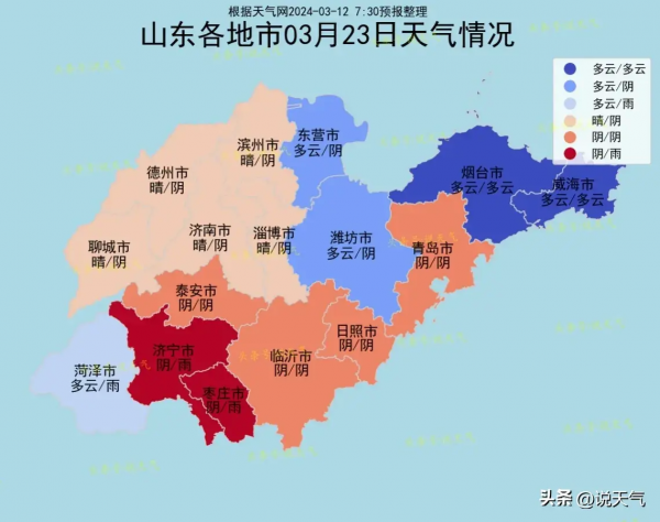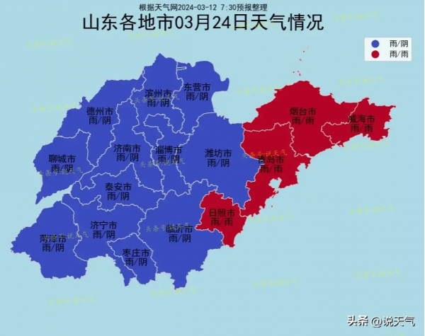 根据中央气象台最新的预报,预计明天,山东西南部地区将有一轮降雨出现!