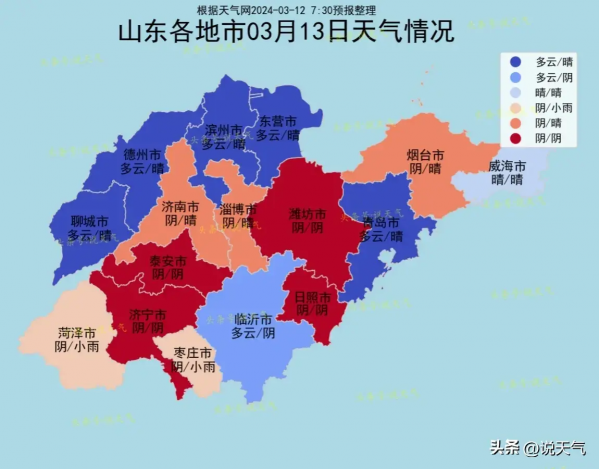 未来三天山东大部分地区天气晴间多云,气温先升后降