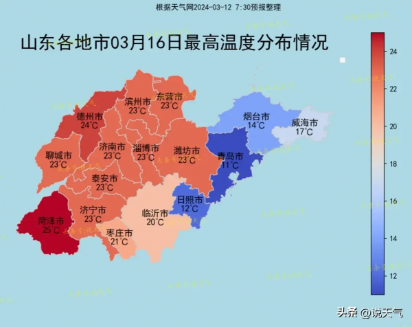 该说不说,眼下的持续升温还将是很给力的!预计16日,多地将迎来气温的新高,其中,德州,菏泽将有24-25度了!