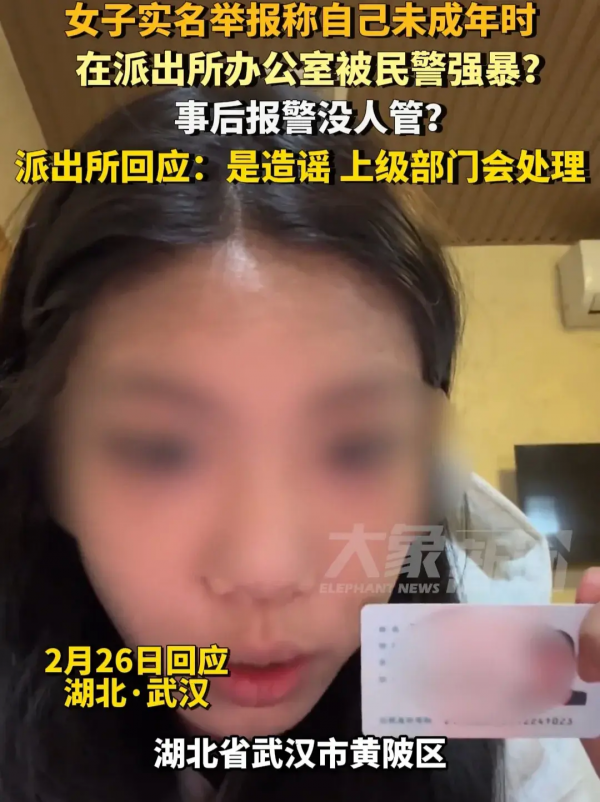2月26日,一女子举报湖北武汉一派出所民警强暴未成年少女一事,迅速引起网友关注和热议。