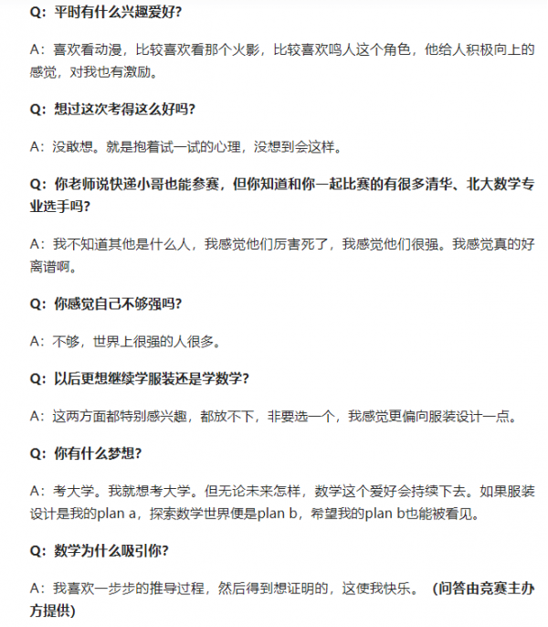早在2022年和2023年的阿里巴巴全球数学竞赛中,他分别在预赛中取得了第166名和第432名的成绩。