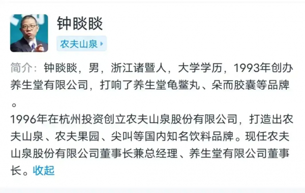 我们来看钟睒睒近期出现的新问题。作为一位备受关注的企业家和公众人物,钟睒睒的一举一动都备受瞩目。最近她卷入了一场名为"养生堂"的产品宣传风波中。315晚会曝光了农夫山泉旗下养生堂产品存在虚假宣传的问题,这一指责直接针对了钟睒睒所属的公司。