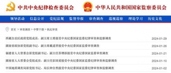 2024年1月,中央纪委国家监委网站受权发布通报--