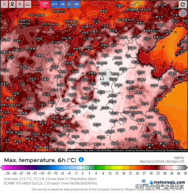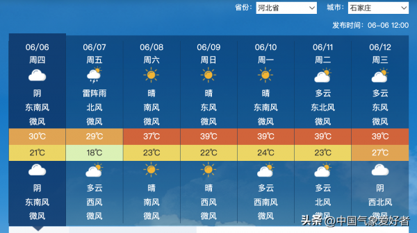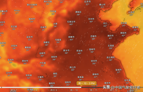 根据中央气象台预报,河北南部、河南、山东、陕西关中、新疆北部和东部等地的最高气温将达到39到42度,局地最高气温甚至可能接近或突破6月的极值。超级计算机最新预报中甚至指出,6月12日华北平原太行山前最高气温将高达44度!