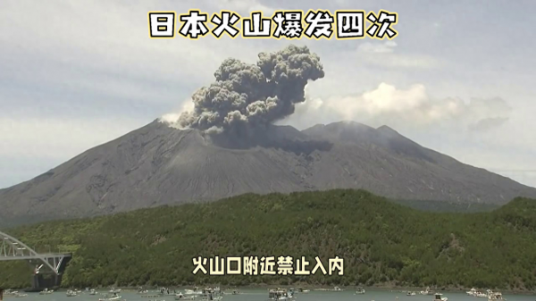 日本一座火山一天内连喷4次,喷发形成的烟柱最高达700米