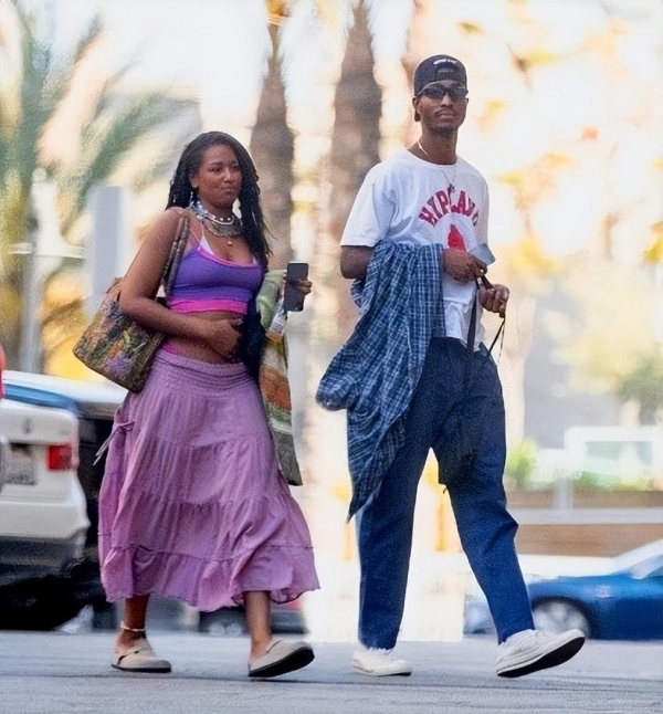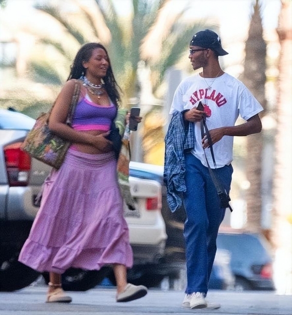 和男友一起逛街的时候,萨沙依然穿着她喜欢的粉紫色小吊带,只是没有再穿充满个性的牛仔裤,而是换上了一条比较飘逸柔媚的粉紫色半裙,虽然她的个头接近一米八,在男友身边还是小鸟依人。