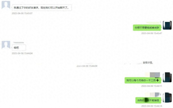在QQ聊天中,犯罪嫌疑人继续以金钱和游戏皮肤作为引诱,同时提出了"试用期三天"的条件,并承诺如果对方乖乖听话,就会得到报酬。受害人答应之后,犯罪嫌疑人通过控制他们拍摄身体某部位的照片来逐步加强控制力度,然后逼迫他们拍摄更私密的部位照片或视频供其观赏。
