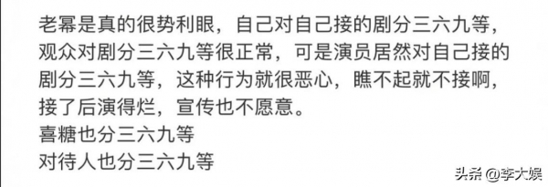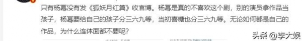 而早在《狐妖》播出之前,就已经有网友发现杨幂对这部剧不怎么上心,与《哈尔滨一九四四》形成鲜明对比。而这次《狐妖》大结局,杨幂居然一字不提,有时间发代言广告,却没时间发一个收官文,如此行为遭到了群嘲,不少人觉得她是因为剧播得不好就不认领,太不体面了。