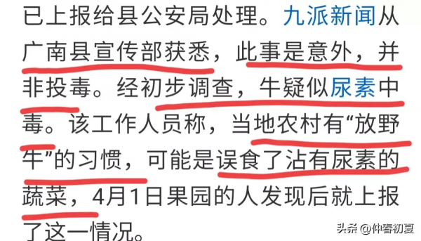 警方调查了好几天,初步认定,这些牛死亡的原因是吃了尿素中毒。
