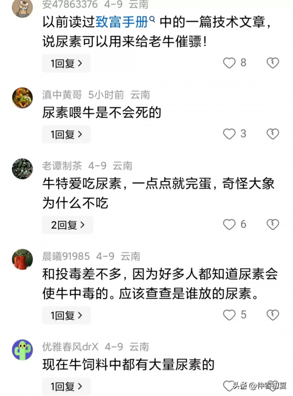 看到网友留言我才知道,原来牛还会吃尿素,而且,尿素对于牛的危害还这么大。