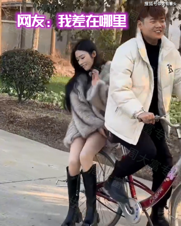 女子坐在自行车后座上,也没有生气,而是满脸笑容,看起来对相亲男子十分满意!