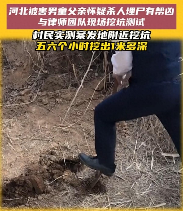 2024年3月17日,河北邯郸的一起恶性杀人案让整个社会为之震惊。案件中,一名品学兼优的男生遇害,其父亲为了揭开儿子遇害背后的真相,决定与律师团队一起进行挖坑测试。他们希望通过模拟未成年嫌疑犯挖坑埋尸的过程,来探寻是否还有其他帮凶的参与。