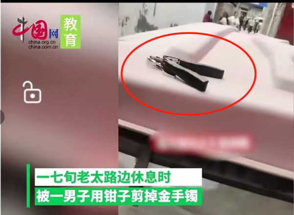 七旬老人路边休息被人用钳子剪断金手镯,抢"金手镯"不成喜提"银手镯"!