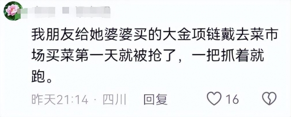 婆婆买的大金项链,去菜市场第一天就给抢了。