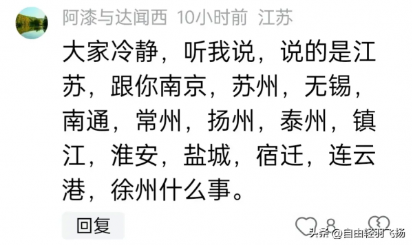 网友说:大家冷静,听我说,说的是江苏,跟你南京,苏州,无锡,南通,常州,扬州,泰州,镇江,淮安,盐城,宿迁,连云港,徐州什么事。