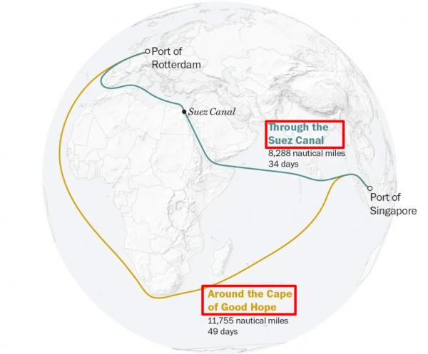 (苏伊士运河航线确实近了不少,但如果不能走就是另一说了)