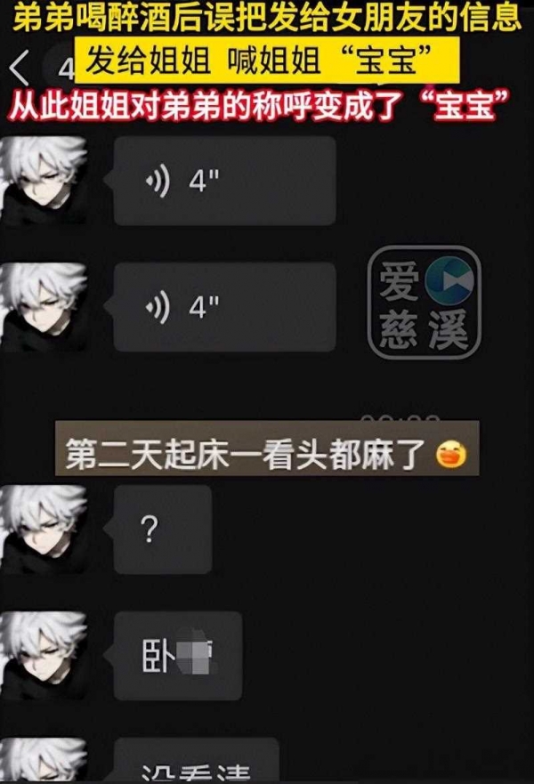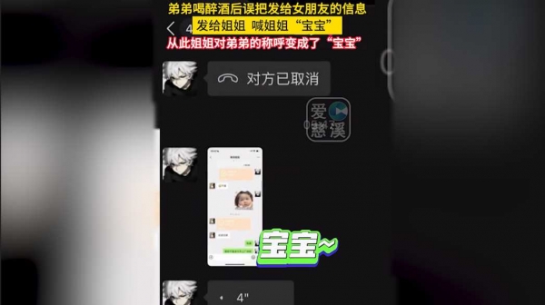 弟弟醉酒误把发给女友信息错发姐姐,姐姐曝出聊天记录