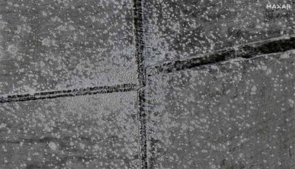 (商业卫星成了俄乌重要的情报来源,图为卫星拍摄的密集弹坑)