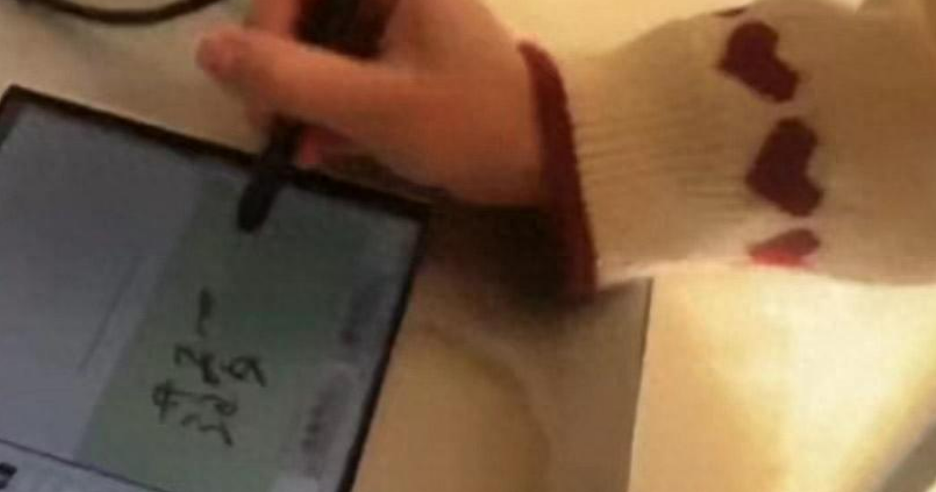 从视频画面中可以看到,一名年轻女子,手里拿着一只签字笔,正在她那份文件上,最下端要签上自己的名字,没想到,她太激动了,手抖得连笔都拿不住,签字的时候,比划都不能写连贯,断断续续的,号称"甲骨文。"