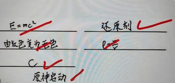 另一位学生的行为更为过分,他在原本严肃的答题区域写下了"原神启动"这四个字,显然是出于戏谑或者故意捣乱的目的。老师们表示,这种情况存在一定的风险,因为在试卷上做出标记或写下与答题无关的内容,可能被当成是作弊事件来处理。