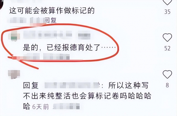 然而,这张卷子在阅卷组中已经出了名,老师们将其直接传送给了德育处,据说这位学生接下来将会面临相关的纪律处理,得等着接受教育处的约谈。