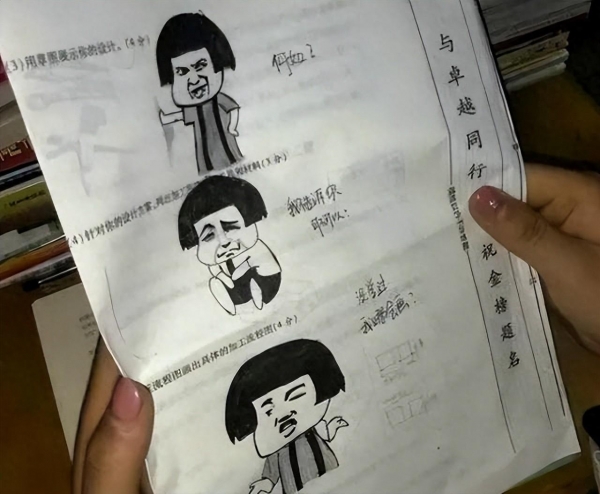 特别是一些平时学习表现不佳的学生们,他们在考试卷子上居然纷纷玩起了梗,通过漫画等不正经的形式来回答问题。更有甚者,有一位同学不仅不认真做题,甚至在试卷上玩起了《原神》这个游戏的梗,引起了一阵轰动。