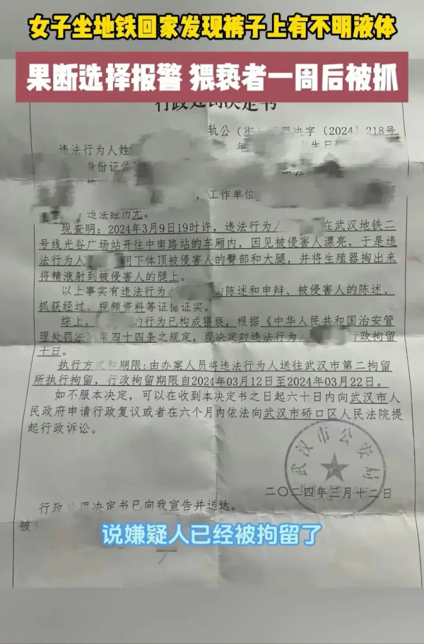 2024年3月19日的夜晚,武汉的街头灯火通明,人潮熙熙攘攘。女子结束与朋友的愉快聚会后,独自一人乘坐地铁回家。她身着白色毛衣和牛仔裤,衣着严实,未露出任何过分的地方。然而,让她万万没想到的是,这次地铁之旅却成了她终身难忘的噩梦。