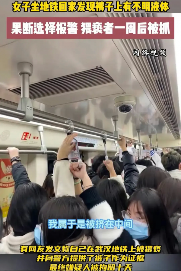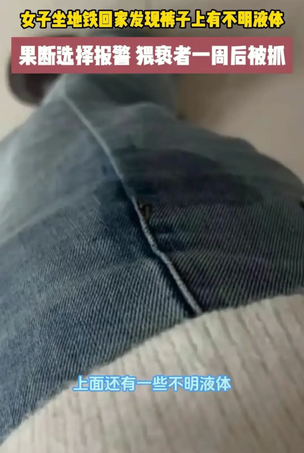 地铁车厢内人山人海,女子被人群挤在中间,几乎没有站稳的空间。就在行车中,她突然感觉有人在用某种东西顶着她的大腿。由于车厢内人潮涌动,她最初并没有往坏处想,只是觉得可能是人群挤压的结果。但当她下车后,却发现自己的裤子上湿了一片,还留下了不明液体。