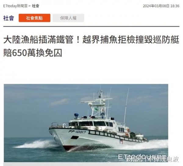 无论如何,台当局粗暴对待大陆渔民久矣,大陆渔民被追赶、扣押、罚款、判刑的事件太多了,只是最近厦金撞船闹出人命才再次被舆论关注。希望两岸问题早日解决,让大陆渔民不再遭受欺侮。