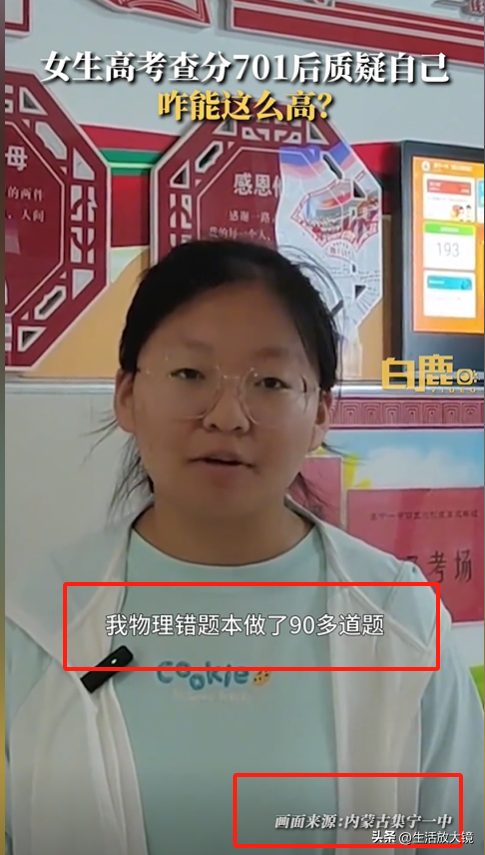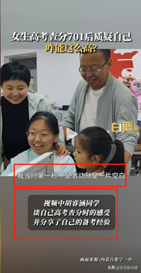 内蒙古集宁一中的一名学生胡睿涵在查到自己701的分数时,第一秒脑袋一片空白,吃惊的问道:"怎么能这么高?"