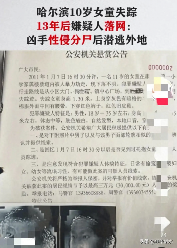然而,就在昨天,这个尘封已久的案件再次引起了社会的广泛关注。一名男子被捕,他竟然是那个失踪女孩的凶手。更令人发指的是,他在犯罪后还将女孩分尸,将尸体藏在了哈尔滨市的一处荒废工厂内。这一罪行让人不寒而栗,也让人们对这个社会的道德底线感到深深的忧虑。