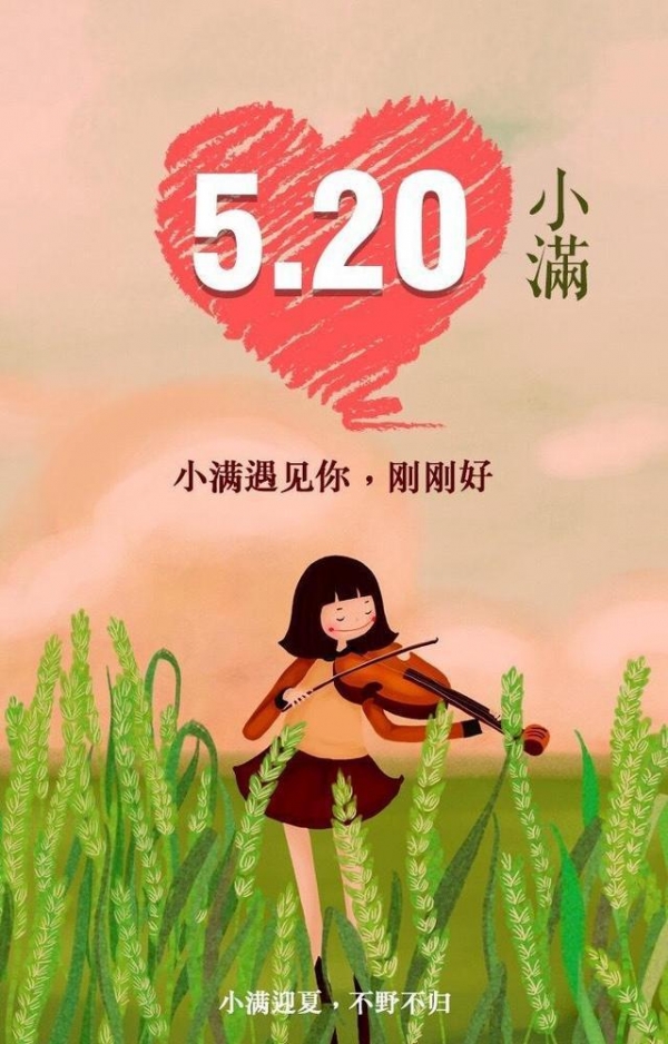 小满节气将至,小满也是夏季的第二个节气。今年的小满很特殊,在5月20日,520谐音我爱你,又逢农历的1314。今年的小满节气可是充满爱意的小满。"人生小满胜万全",在这个公里和农历都撞上爱意的一天,好好珍惜这一天,对自己爱的人大胆说出来,感受爱情的美好,也祝天下有情人终成眷属。