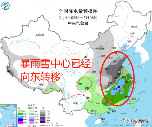 本轮暴雨雪最强时刻到来,到了2月5日,本轮暴雨雪的主战场中东部地区的暴雨雪大范围撤出战斗,但2月3日至2月4日,冻雨地区出现扩大趋势,大家返程一定注意安全!