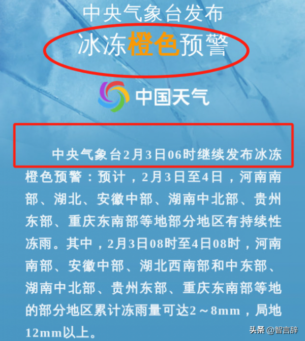 另外一种天气更值得大家去关注,那就是雨雪转换区的那条冻雨带,就在1日武汉地区已经开始下了冻雨,冻雨对道路安全的影响比暴雪要高很多,此次冻雨最西南到了贵州地区,最东北到了江苏地区,可谓是范围特别广,直接把华中地区和华东地区一分为二了,严重影响了大家的出行。