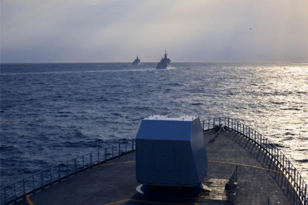 6月12日,南部战区发布消息称,海军某驱逐舰支队组织3艘055型导弹驱逐舰和1艘052C型导弹驱逐舰组成训练编队,赴南海某海域展开实战化训练。这3艘055驱逐舰分别是咸阳舰、遵义舰、延安舰,并没有此次出现在巴拉巴克海峡的大连舰。这也意味着,3艘"万吨大驱"在南海协同演练的同时,大连舰很可能早就已经在南海某个海域开展行动。4艘055驱逐舰同时在南海行动,这也是中方在南海坚决维护自身的合法权益的"定海神针"。