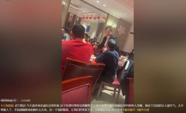 "太不尊重人了。"这名网友称,不知道该经理和隔壁桌是什么关系,期间还不停地给隔壁桌顾客敬酒。