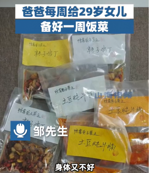 爸爸每周给29岁女儿备好一周饭菜