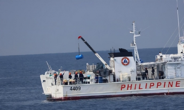 更令人警惕的是,菲方运送的物资中很可能包含水泥等建筑材料,显示菲律宾方面可能已经启动填海建造永久性据点的步骤。中国海警在近距离拍摄的照片显示,该船吊装的物资里有明显的水泥包裹。