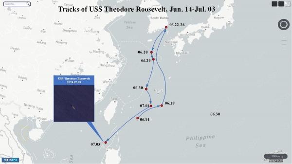 (美国海军罗斯福号航母打击群已经在7月3日进入南海)