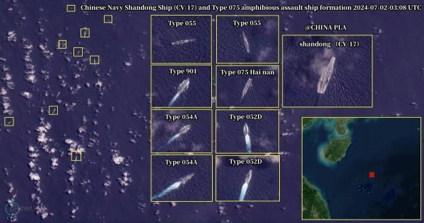 最近一个多月,西方影像卫星也一直在盯着南海。他们发现中国海军山东号航空母舰在六月中旬已经离开三亚的母港,在菲律宾吕宋岛西部海域巡航多日;近日他们更是发现在西沙群岛附近,山东号航母与075型两栖攻击舰海南号,以及2艘055型万吨大驱、2艘052D型神盾驱逐舰、2艘054A型护卫舰和1艘901型补给舰,组成了一支庞大的特混舰队,水面舰艇总数达到了9艘,总吨位超过20万吨。